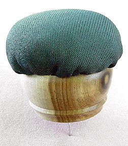 pins. Covered in navy blue fabric. |